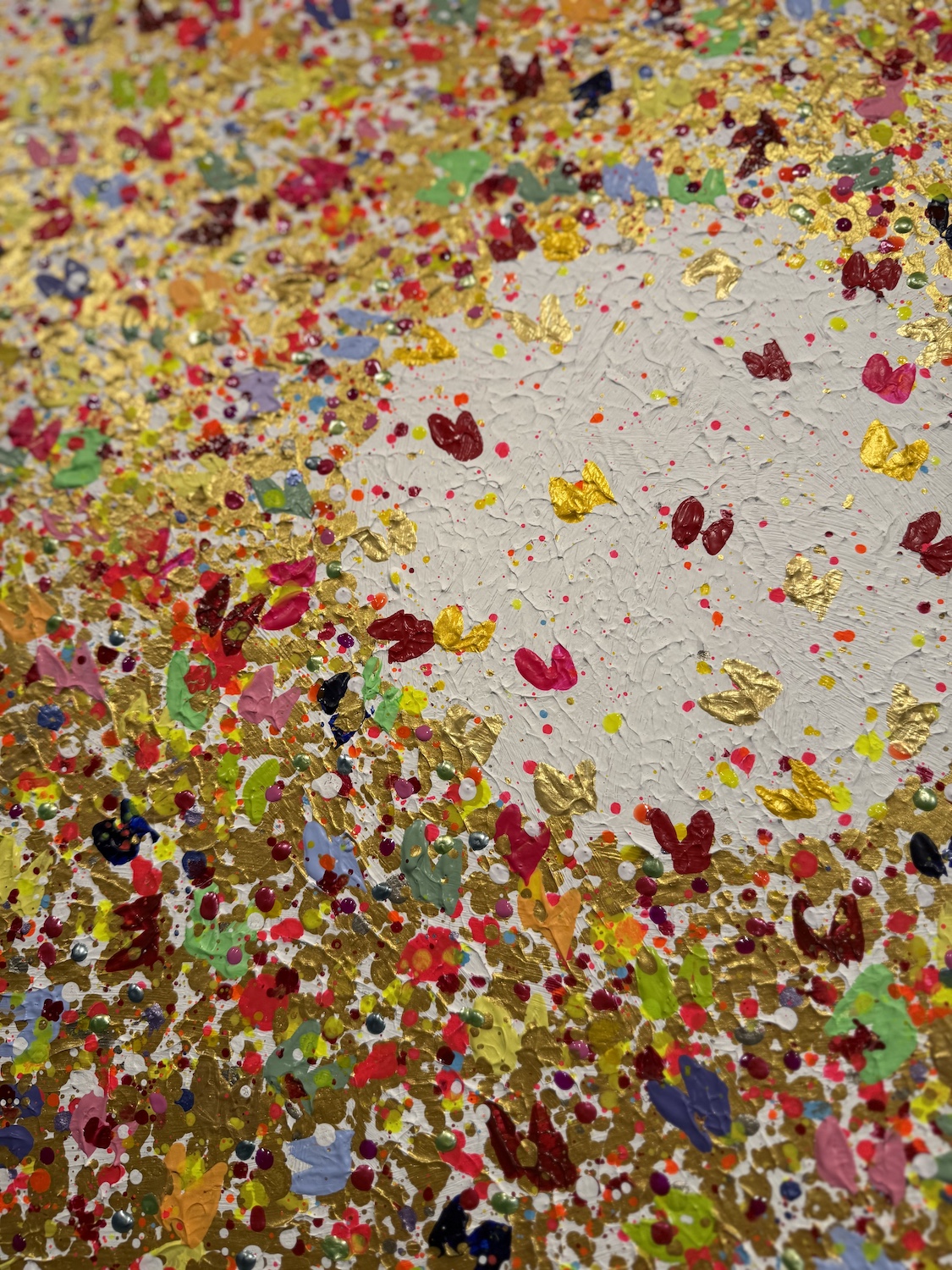 Acrylverf, acrylinkt, schildersmedium, effectliner op canvas met wit bakkader