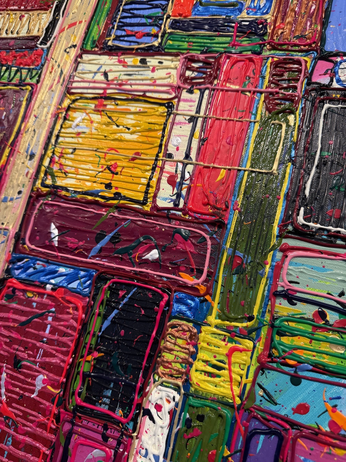 Acrylverf, reliëfpaint op canvas met zwart bakkader